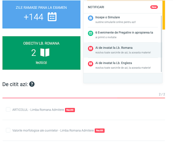 In setarile Contului Tau vei putea alege institutia pentru care te pregatesti si un Program Zilnic va fi generat special pentru tine, astfel incat pana la Admitere parcurgi Materia Recomandata de cate ori doresti si sa o aprofundezi la cel mai inalt nivel.