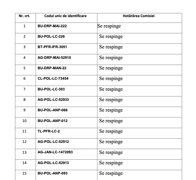 EXTRAS DIN PV 4401690 / 30.08.2021 cu rezultatele analizei contestaţiilor şi hotărârile adoptate de Comisia de soluţionare a contestaţiilor