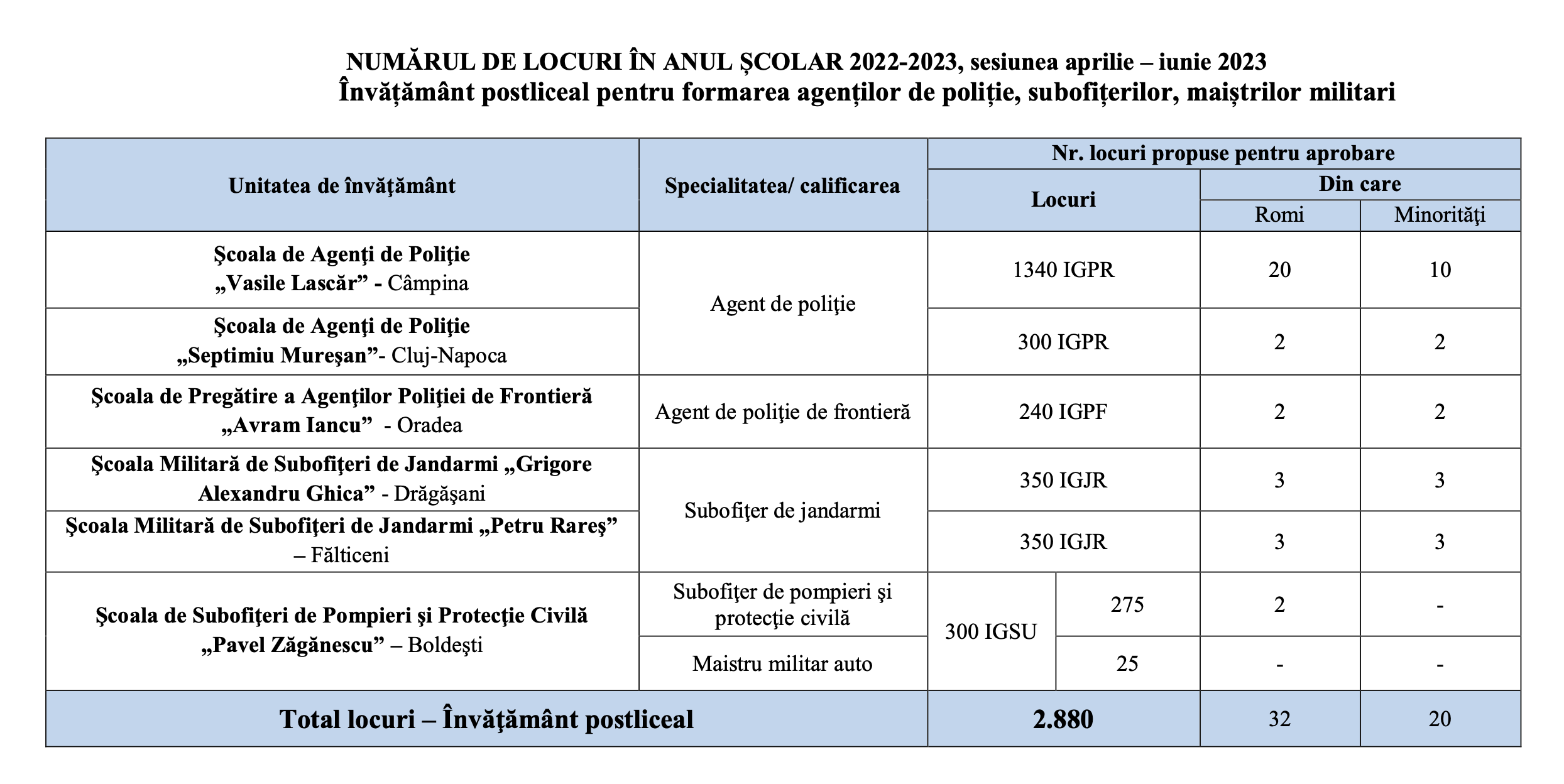 REZULTATE PROVIZORII admitere È™coli de poliÈ›ie, jandarmi È™i pompieri 2023 – sesiunea de primăvară: