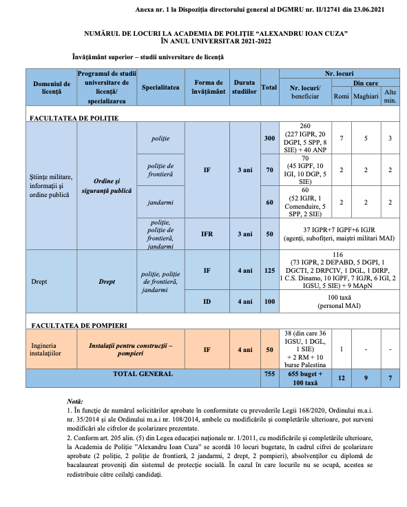 CARE ESTE NUMARUL DE LOCURI LA ACADEMIA DE POLITIE IN 2021?